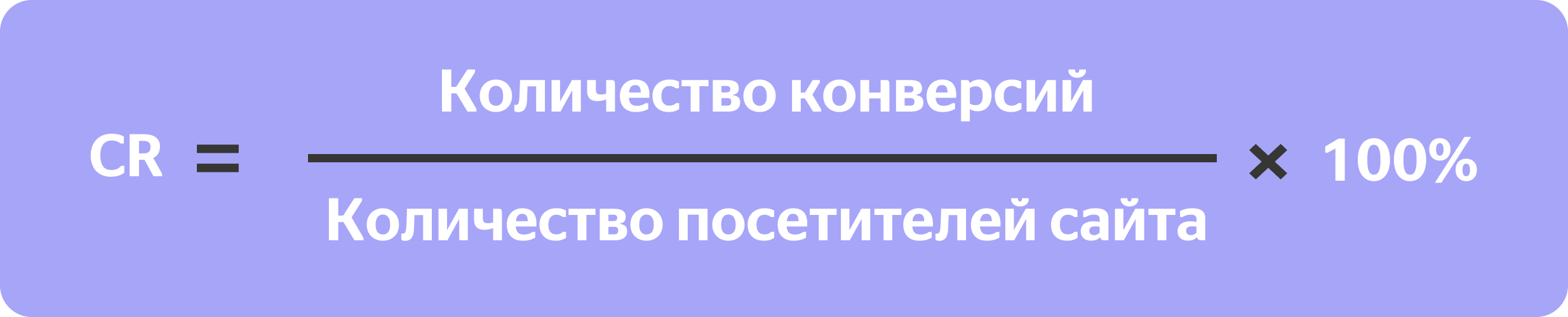 Это соотношение посетителей сайта к тем, кто совершил целевое действие: зарегистрировался, оформил заказ, заполнил форму обратной связи. Конверсию нужно считать, чтобы понимать, насколько ваш сайт побуждает ЦА к действию. Показатель отображается в статистике рекламных кабинетов Яндекс.Директа и Google Adwords, но его можно рассчитать по формуле: