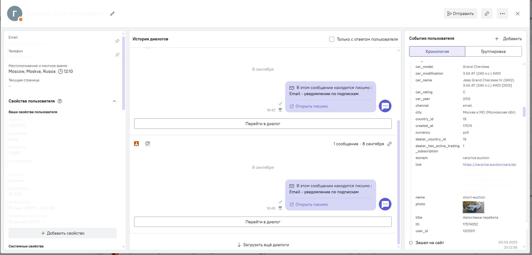 Уход Exponea из РФ. В августе 2024 года Exponea предупредила о прекращении работы с российскими компаниями за три часа до отключения. Команда CarPrice успела выгрузить схемы кампаний в JSON, структуру сценариев и базу клиентов. В первые несколько дней через бэкенд сайта настроили отправку критически важных сообщений, например, уведомления о запуске аукциона, сервисные письма и напоминания клиентам.