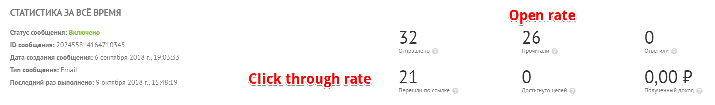 Эффективность сценария легко проанализировать сразу — в Carrot quest или других сервисах легко посмотреть статистику письма. Вы сразу же видите, сколько писем прочитано, сколько человек перешло по ссылке, а сколько отправило письмо в спам. Эти показатели необходимо отслеживать и в динамике. Если процент переходов по ссылке снизился, нужно работать над содержанием письма.