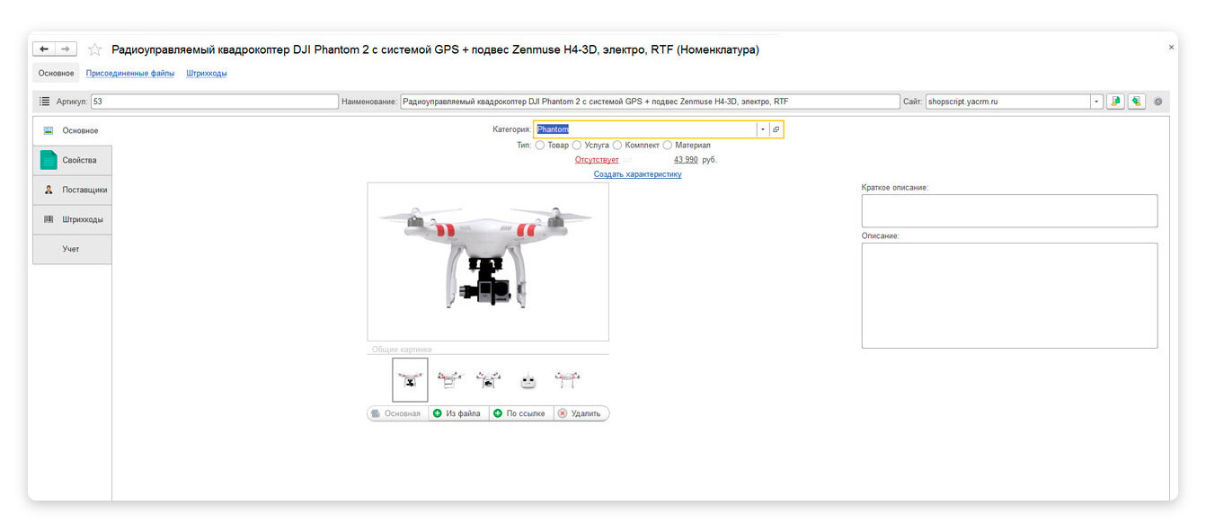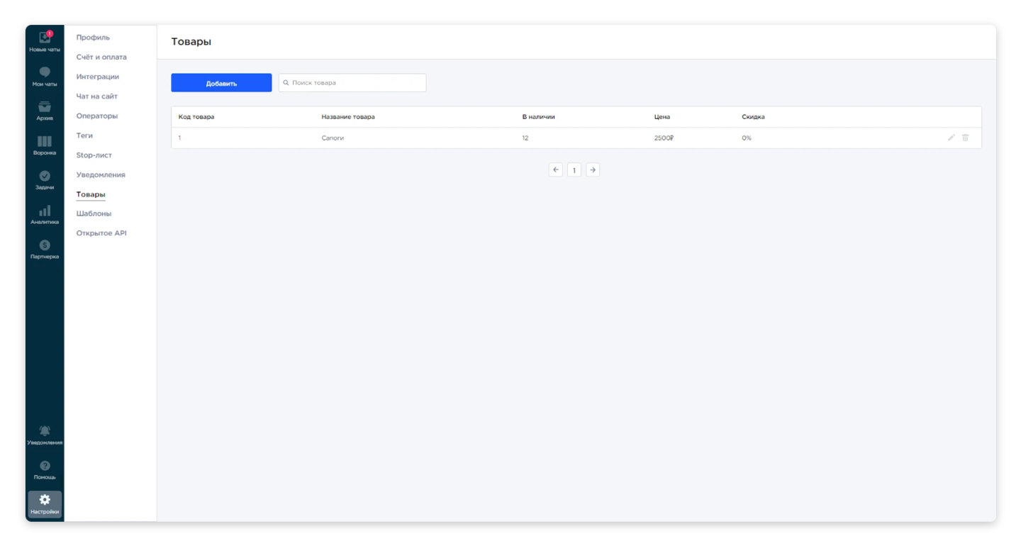 Каталог товаров. В системе можно создать каталог товаров с названиями, артикулами, характеристиками, фотографиями, ценами, кратким описанием. Искать товары, менять цены и параметры здесь очень просто.