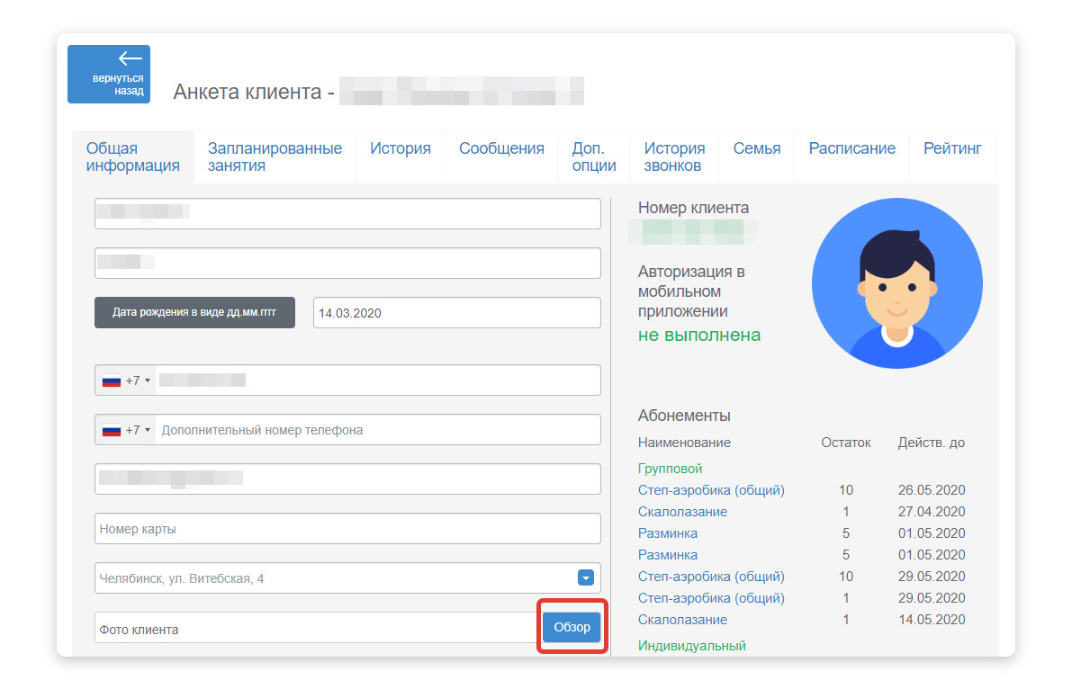 Учёт клиентов. Все данные о клиентах собраны в единой базе: