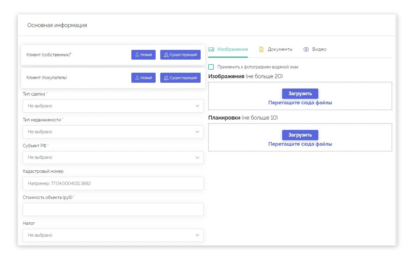 В системе также есть парсер недвижимости. Он сканирует сайты и доски объявлений, отслеживает новые публикации и позволяет расширить базу объектов.