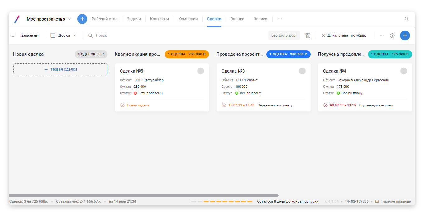 В итоге все данные о клиентах, история сделок и общения находятся в одном окне. Документы и договорённости хранятся в системе, сотрудники помнят о задачах, не забывают связаться с клиентами, а руководитель контролирует работу. Это позволяет выстроить работу компании системно.