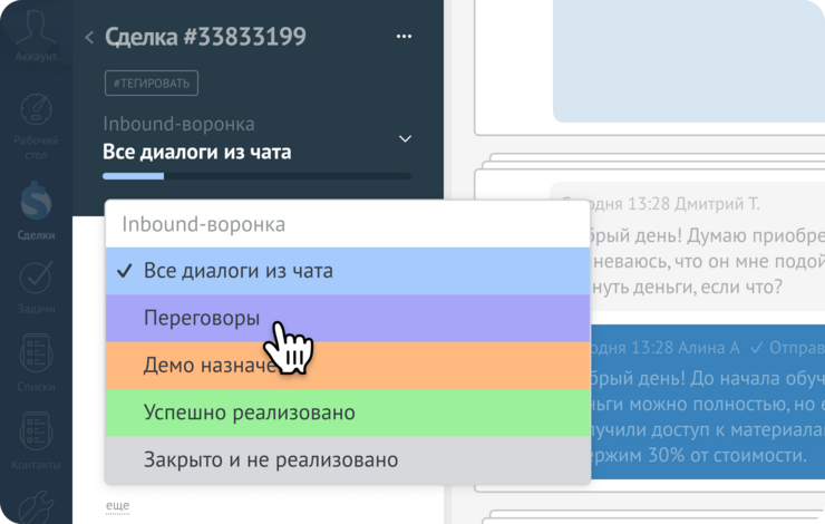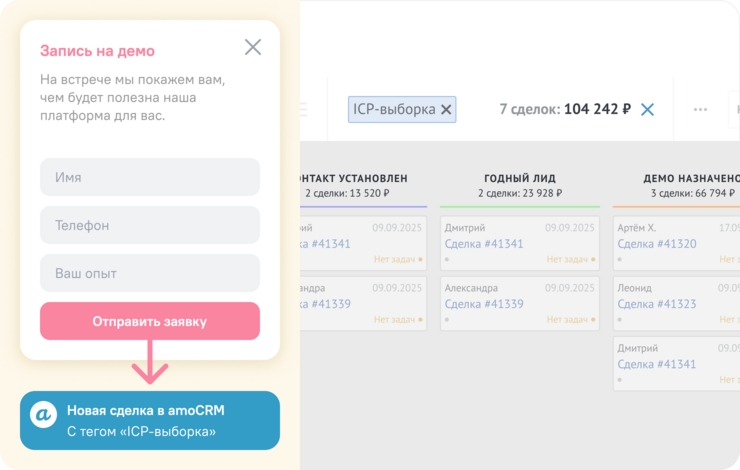 Если настроить автоматическую разметку сделок тегами по источнику, можно отслеживать, какой поп‑ап, чат‑бот, письмо или кампания привели клиента.